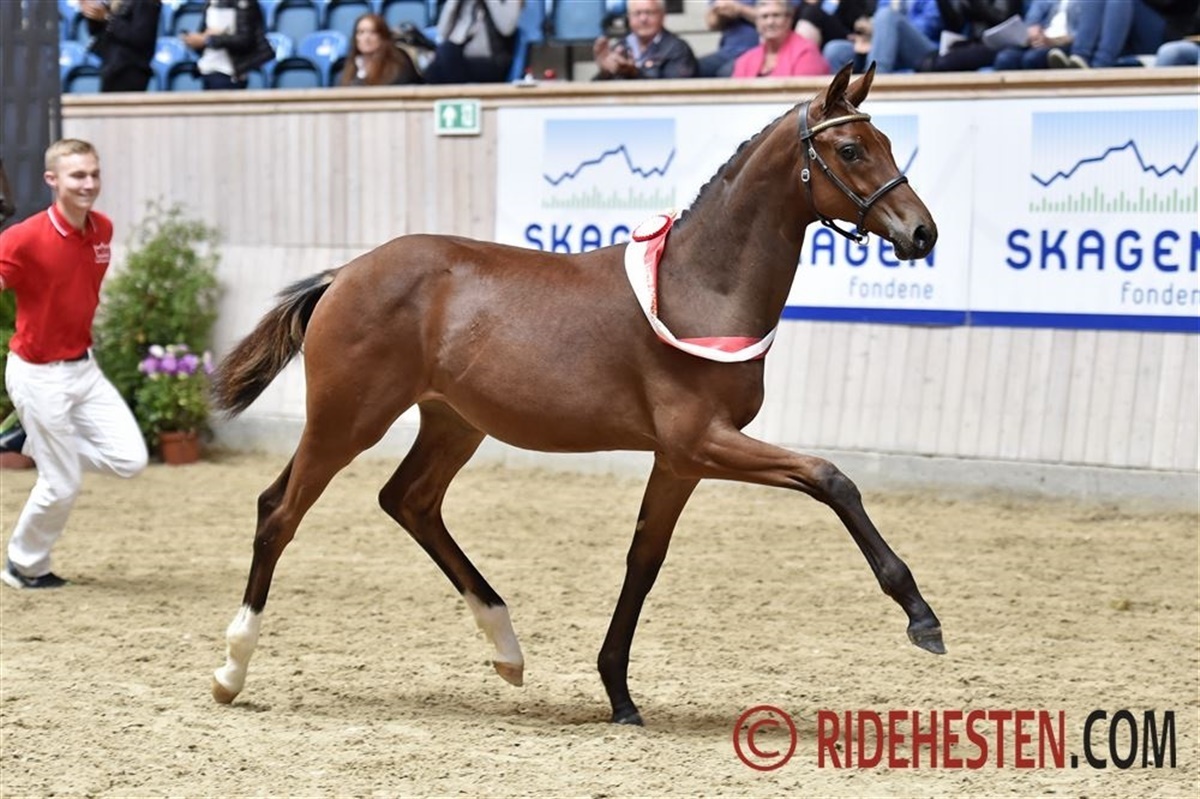 Dommerne betegnede blandt andet føllet som et højstillet, storrammet føl med en særdeles smidig overlinje.