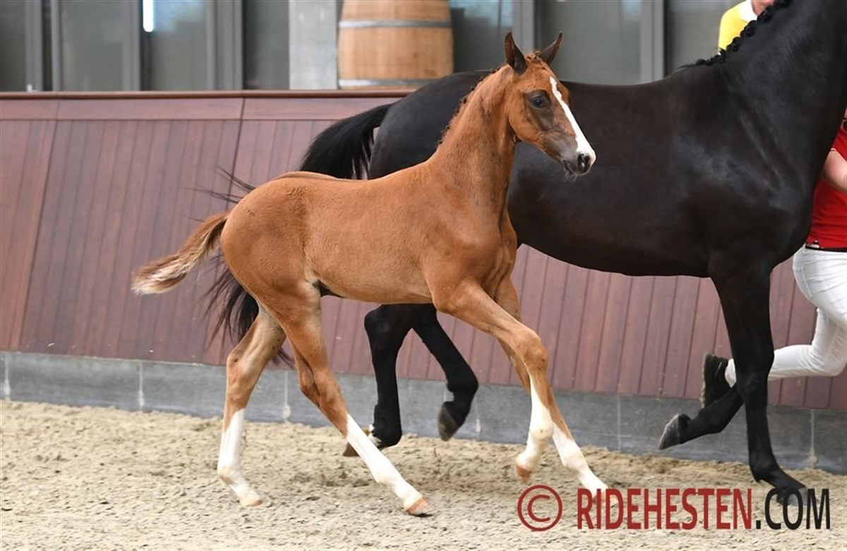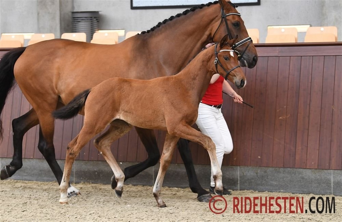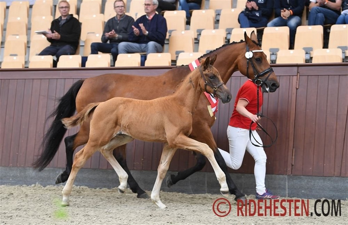 Vinderhoppeføllet og alle fire topplacerede hingsteføl kommer alle under hammeren på Dansk Varmblods auktion lige nu.