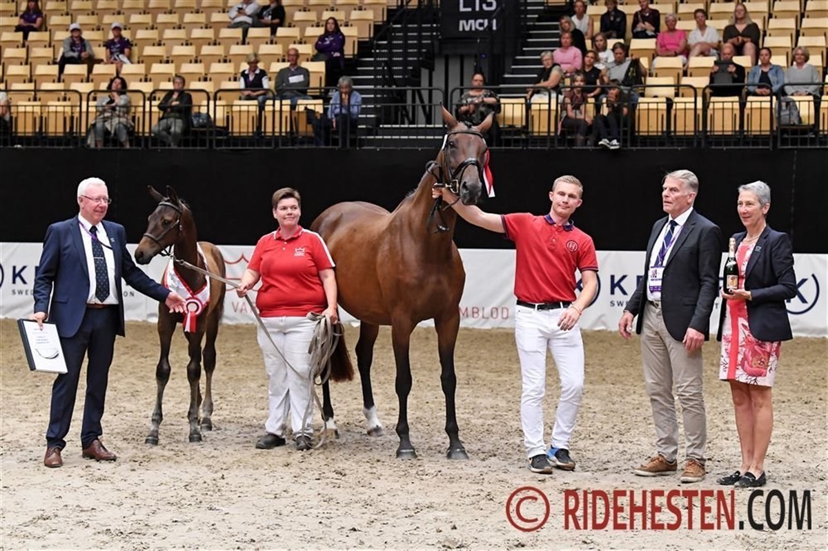 – Han er en fantastisk flot og moderne model, højtstillet, passende ædel og harmonisk med rigtig godt udtryk og maskulint præg. Han har store og åbne kropspartier og en vellinjeret overlinje. Bevægelsen er taktfast og energisk i skridt, han er helt prima gående i trav, der er rummelig og elastisk med dejligt afskub og er helt dejligt op-ad-bakke, og han har også en rummelig og velbalanceret galop.