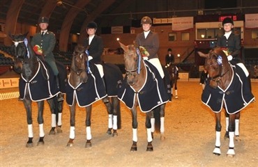 Solrød Rideklub er vært for finalestævnet, hvor rytterne fra hver klub fordeler sig i en LA-2 og en LA-5. Det er holdet fra Herning Rideklub, der i dag har taget teten og i alt har redet sig til 219,089 procentpoint. Efter Herning Rideklub ligger kampen ret tæt mellem Riisgaard Sportsrideklub, Glamsbjerg Rideklub og Ertebjerggaard Sports Rideklub.