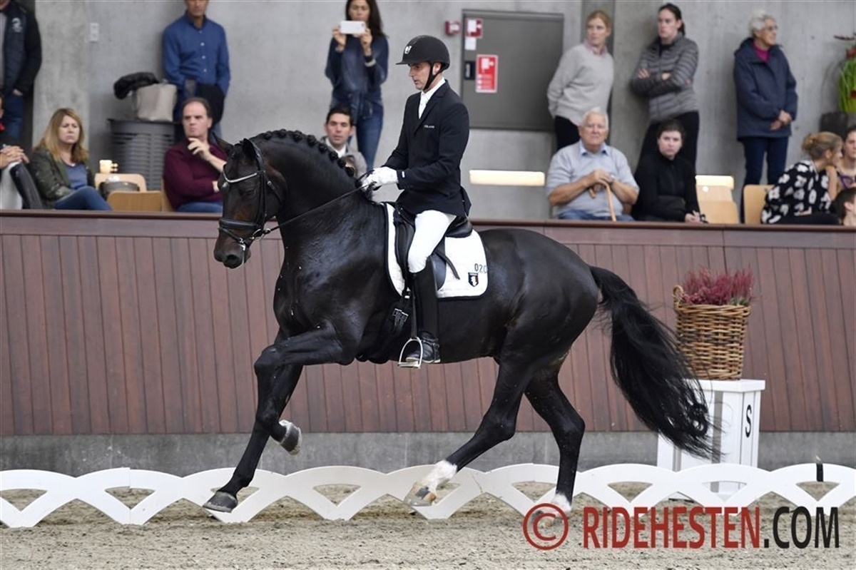 Hingsten Ferrari e. Foundation/ Blue Hors Hotline, der er avlet af et af verdens største varmblodsstutterier, Gestüt Lewitz i Østtyskland, har tidligere vundet UVM-sølv under sin faste rytter og ejer Andreas Helgstrand, og ekvipagen besatte i denne finalekvalifikationsklasse fjerdepladsen med 90,40 point. Dommerne gav her 9,5 for galop og 9,3 for kapacitet.