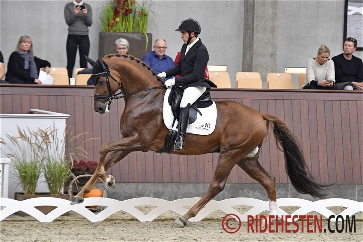 – Skridten, den er ok. Vi giver 10!, lød det fra højttalerne efter beriderJan Møller Christensens overbevisende ridt på guldmedaljehingsten Hesselhøj Donkey Boy e. ERA Dancing Hit/ Milan (opdr. Dorthe og Hans Jørgen Hoeck), der ejes af Equi Stallion ved norske Kristin Andresen og sidste år vandt bronze ved UVM. God energisk skridt med flot overtrædning, lød det videre fra dommer Grethe Keller. Traven blev belønnet med 9,2, og her blev de gode afkortninger rost. Galop 9,4. God op-ad- bakke-tendens og god balance, gode øgninger og afkortninger. Endvidere fik Donkey 9,5 for ridelighed og 9,8 for kapacitet, og det resulterede i et samlet resultat på 95,80! Det gav sejren til Jan Møller Christensen og Hesselhøj Donkey Boy, der sidste år vandt 5-års finalen med rekordkarakterer.