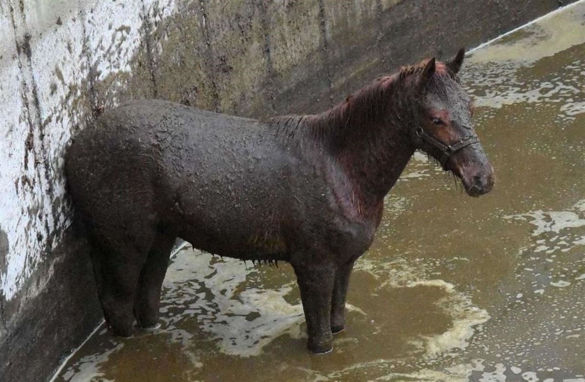 Hvordan det 10 måneder gamle føl Simba endte nede i gylletanken vides ikke med sikkerhed