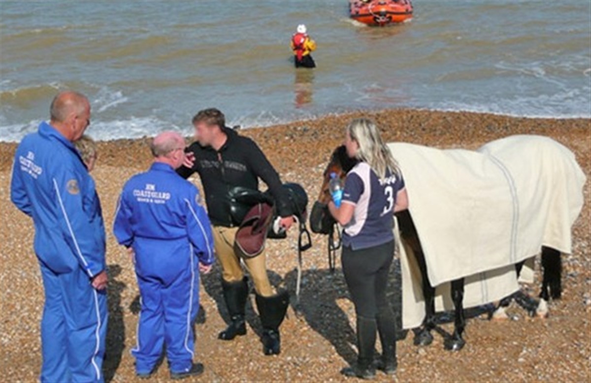 Hesten ved navn Shallimah havde på en tur smidt sin kvindelige rytter af og var efterfølgende blevet bange for en bølge, hvilket på mærkelig vis havde fået hesten til at svømme direkte ud i havet. Rytteren forsøgt at svømme efter hesten, men måtte opgive af sikkerhedsmæssige årsager. Tilfældigvis cyklede admiral Lord Boyce, som er formand for the Royal National Lifeboat Institution, fordi og der blev tilkaldt en redningsbåd. Efter kun 15 minutter ankommer redningsbåden og hesten er nu ca. 800 m. fra kysten og er ved at være udmattet. Redningsmandskabet får sat et tov fast i trensen og er derefter i stand til at få hesten vendt mod land igen. Tilbage på stranden bliver Shallimah igen forenet med sin meget taknemmelige rytter. Kilde: Horsetalk.co.nz