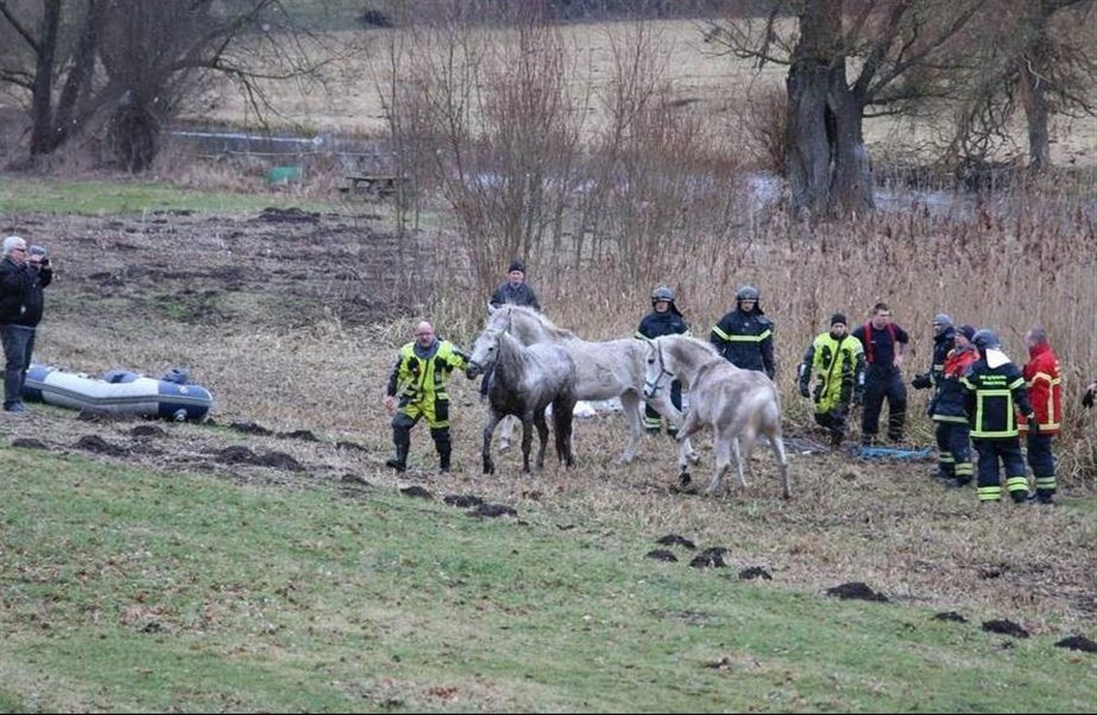 Ifølge Godsejer Claus Neergaard, var det en forbipasserende, der opdagende, at noget var galt. I alt 12 mennesker fra Beredskabsstyrelsen, fire udrykningskøretøjer, heriblandt en bil med kran kom til, for at hjælpe den nødstedte hest. En time senere var det lykkedes redningsmandskabet af få hesten fri. Man lagde en rem rundt om hesten, og med hjælp fra 12 mand, blev hesten trukket fri fra mudderet. - Jeg troede, den havde brækket alle fire ben. Det var helt vildt, at den overlevede, fortæller Claus Neergaard til Ekstra bladet.