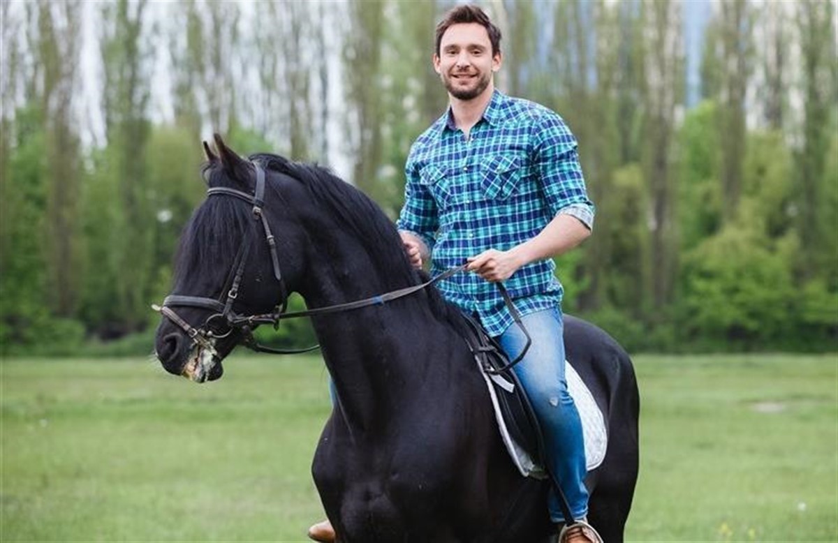 Når hestepigen friskt foreslår en fælles ridetur, så bliver han ligbleg og begynder pludseligt at svede i angst. De næste 45 minutter kommer til at involvere en lidet flatterende ridehjelm og en meget lidt elegant og dertil ukomfortabel udgave af nedsidning i trav.