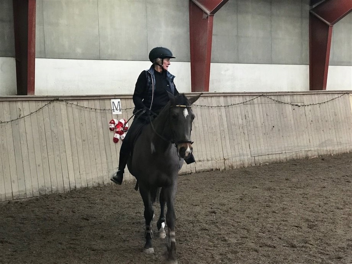 – Vi startede først med, at Margit skulle lære at sidde i balance på hesten. Margit rider uden sin benprotese, så det var svært at sidde lige og følge hestens bevægelser. Men lige så stille gik det fremad. En dag bad jeg hende om letridning, og hun red bare letridning, som om hun havde to ben i stigbøjlerne, siger Charlotte König, som har givet Margit eneundervisning i halvandet år nu.