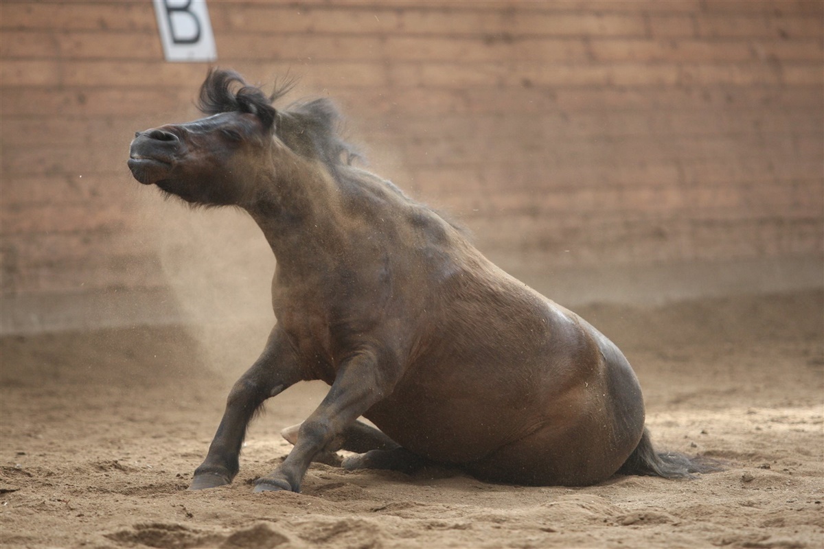 At rulle sig i sandet er normal forbundet med soignering, eller en behagelig adfærd. Det har helt sikker en funktion, siden det har eksisteret så længe i heste.