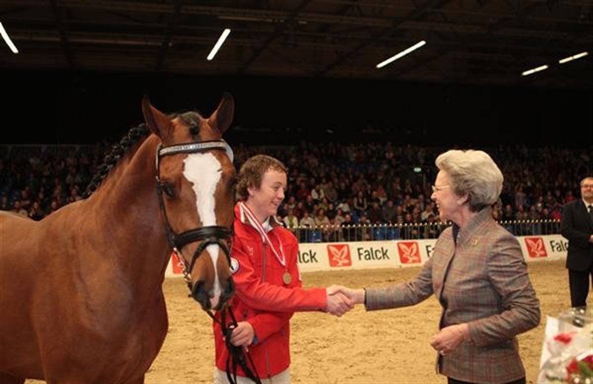 At Kasper H. Hansen er et naturtalent på en springhest, det ved de fleste efterhånden. Men at han også er en særdeles kompetent mønstrer, det er der nok ikke så mange, der har været klar over. 18-årige Kasper H. Hansen, der er ansat på Stald Cajus, havde travlt i Herning i år. Cajus havde i alt medbragt ni heste i Herning, hvoraf tre var 3-års hingste, der stillede til kåring, to var 4-års hingste til kåring og derudover havde Stald Cajus tre heste med i konkurrenceklasserne og en hest med, der deltog i Unghestechampionatet. Ud af de ni heste, skulle de fire også deltage i lørdagens auktion, ligesom Kasper var en del af Gallashowet både fredag og lørdag aften. - Kasper er et naturtalent – også når det kommer til mønstring, Han formår at give hestene de bedst mulige betingelser for at vise sig optimalt, var bl.a. Dansk Varmblods avlskonsulent Karina Christiansen, begrundelse for at det var Kasper, der skulle modtage årets mønstringspræmie. Mønstringspræmien blev uddelt af Dansk Varmblods protektor HKH Prinsesse Benedikte og formand for Hestens Værn, Julie Fjeldborg.