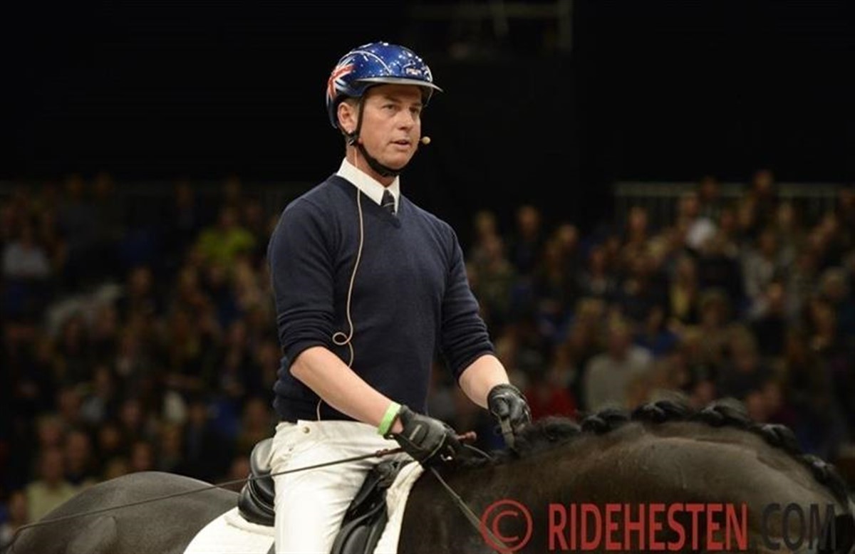 Publikum blev godt underholdt, da engelske Carl Hester kastede sig ud i testryttertjansen i Blue Hors ApS Unghestechampionat i dressur i Skagen Fondene Arena i hal M. Der var både humor og masser af lærerige råd at hente.