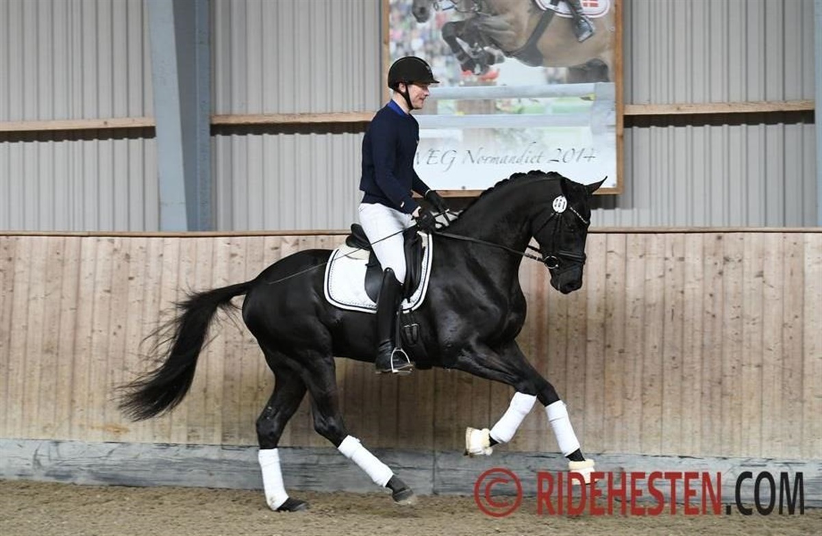 Hingsten, der er kåret i Dansk Varmblod og fire år i år, skulle have gået championatsfinalen i Pavo og Dansk Ride Forbunds championater i dressur for unge heste på Blue Hors i denne weekend og derefter avlsforbundets 35-dages test, som har indsyning mandag den 24. oktober. Begge dele er den desværre forhindret i at deltage i, fordi den står med et brud i et led efter at have været skredet ud på staldgangen.