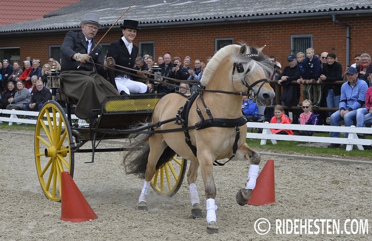 Mens de to yngste familiemedlemmer, Ea Marie og Martin, gjorde deres entre i den gig, som deres oldefar i sin tid brugte til at køre ud i, når der skulle bedækkes hopper, så kom deres forældre, værtsparret Marie Krabbe og Ib Kirk, på banen til hest.