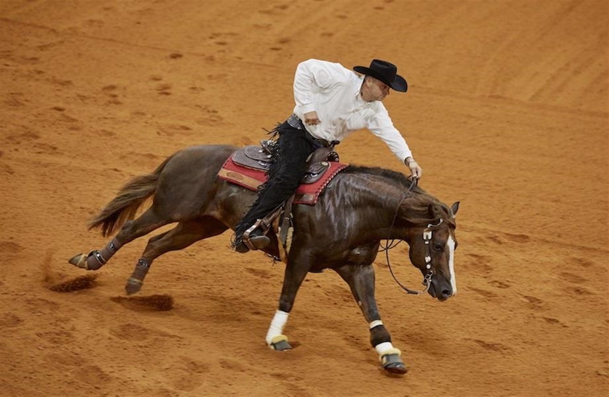 Belgiske Bernard Fonck og den 10-årige quarterhingst What a Wave e. Tidal Wave Jack/Sunrise Enterprise vandt lørdag aften guld i den individuelle reiningkonkurrence ved World Equestrian Games i Tryon.