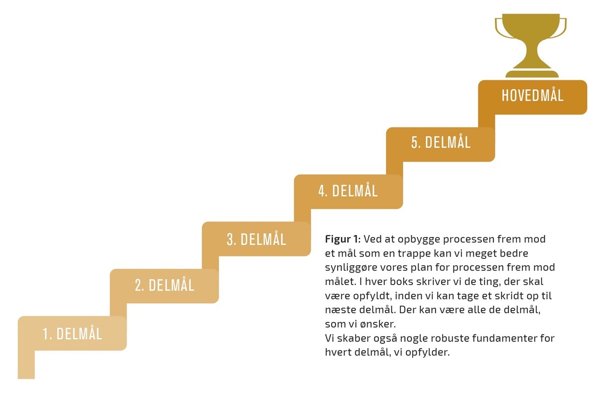 Et delmål (trappetrin) bruges til at opbygge kompetencer og at skabe viden i en udviklende proces, frem mod et hovedmål - således at rytteren får opbygget tryghed til at kunne præstere optimalt ud fra den opsatte plan. Et delmål skal være klart defineret, så man tydeligt ved hvilket udbytte og viden man ønsker at få.