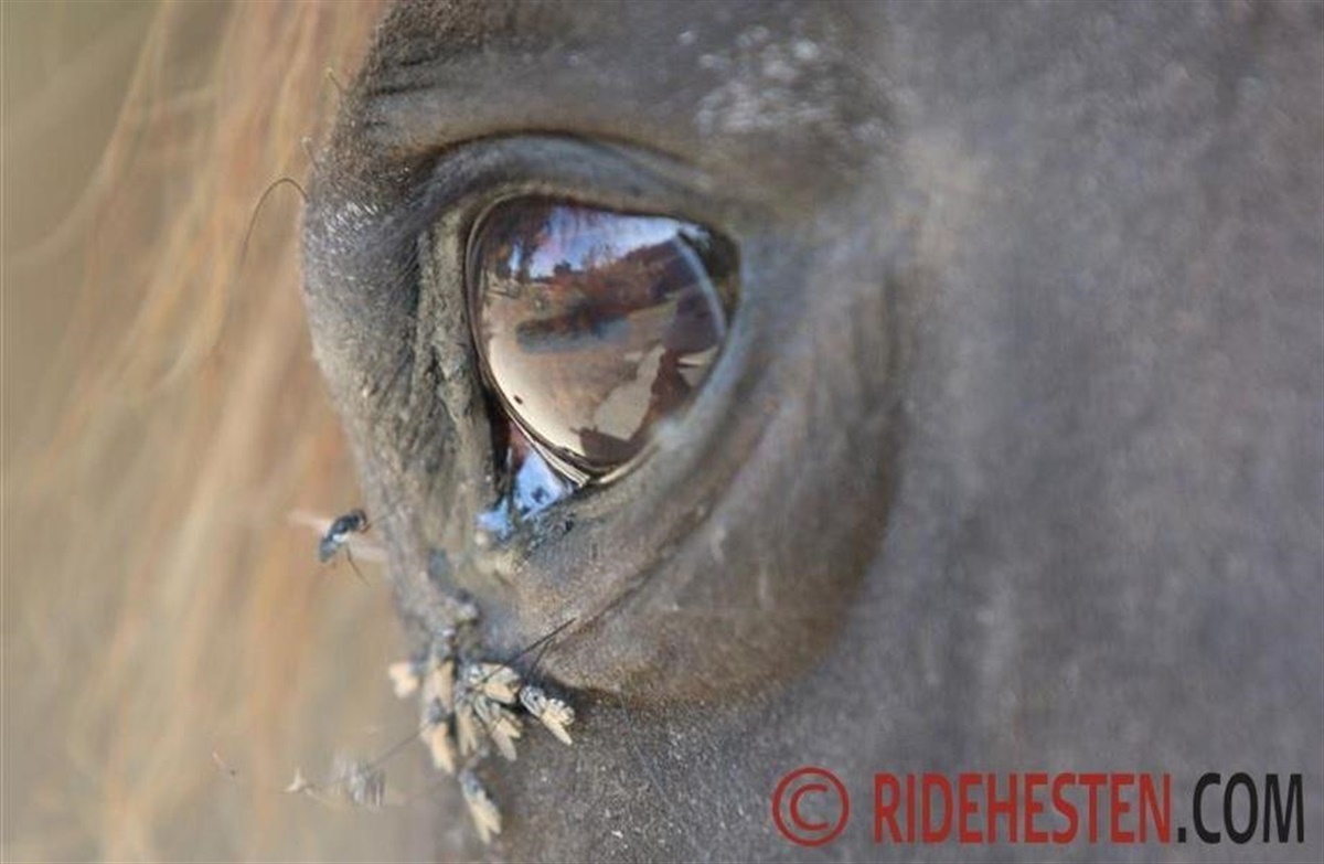 For heste og deres ejere er en af sommerens store plager fluer og andre insekter. Når det er varmt, sætter fluerne sig i øjenkanten på hestene for at drikke hestenes tårevæske. Fluerne forårsager i sig selv ikke skade på hestenes øjne, men fluernes ben er fyldt med snavs og møg inklusiv diverse bakterier, der på den måde overføres til øjnene. Herved opstår øjenbetændelse af varierende sværhedsgrad med tåreflåd til følge - forøget tårevæske tiltrækker flere fluer, og derved opstår en ond cirkel.