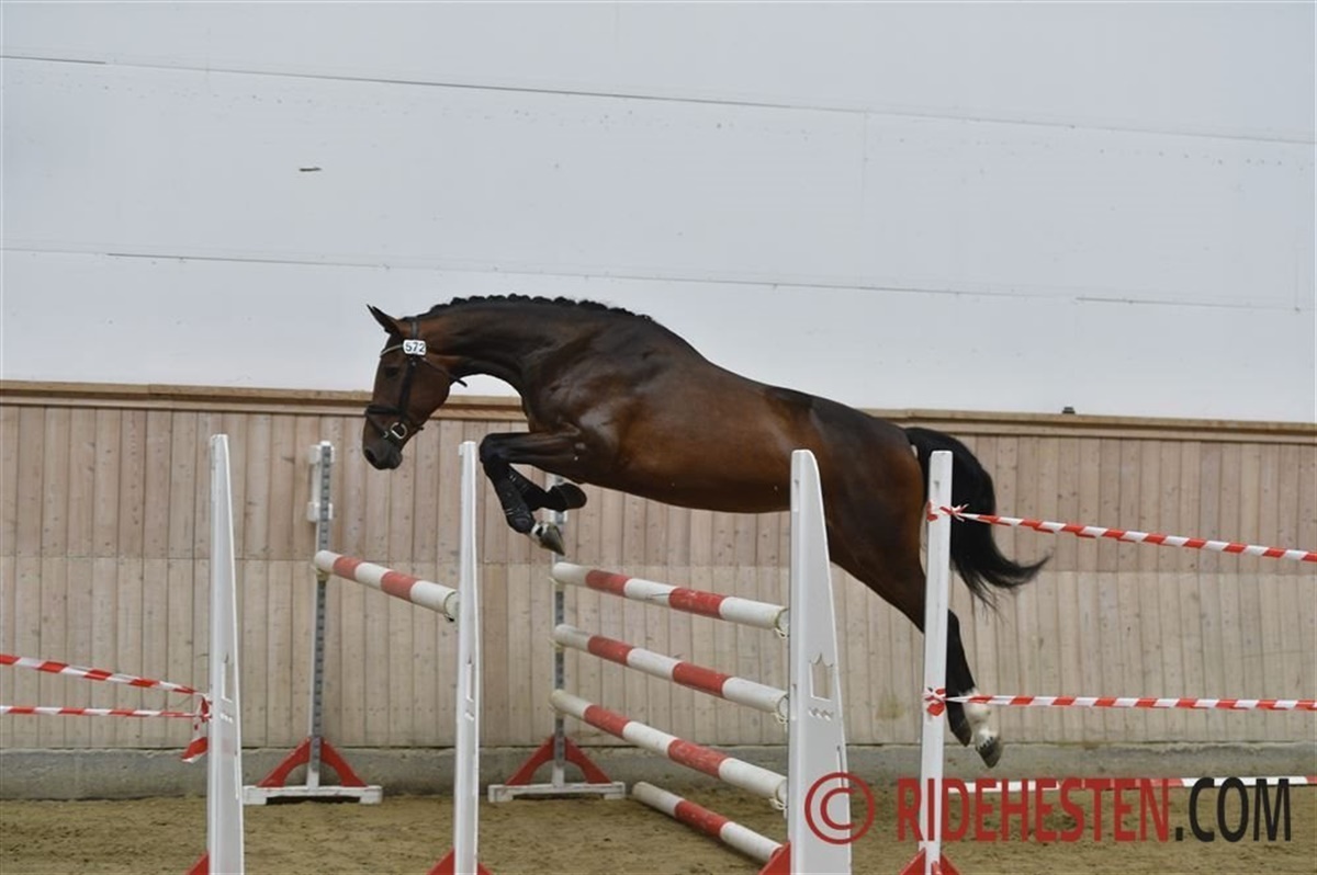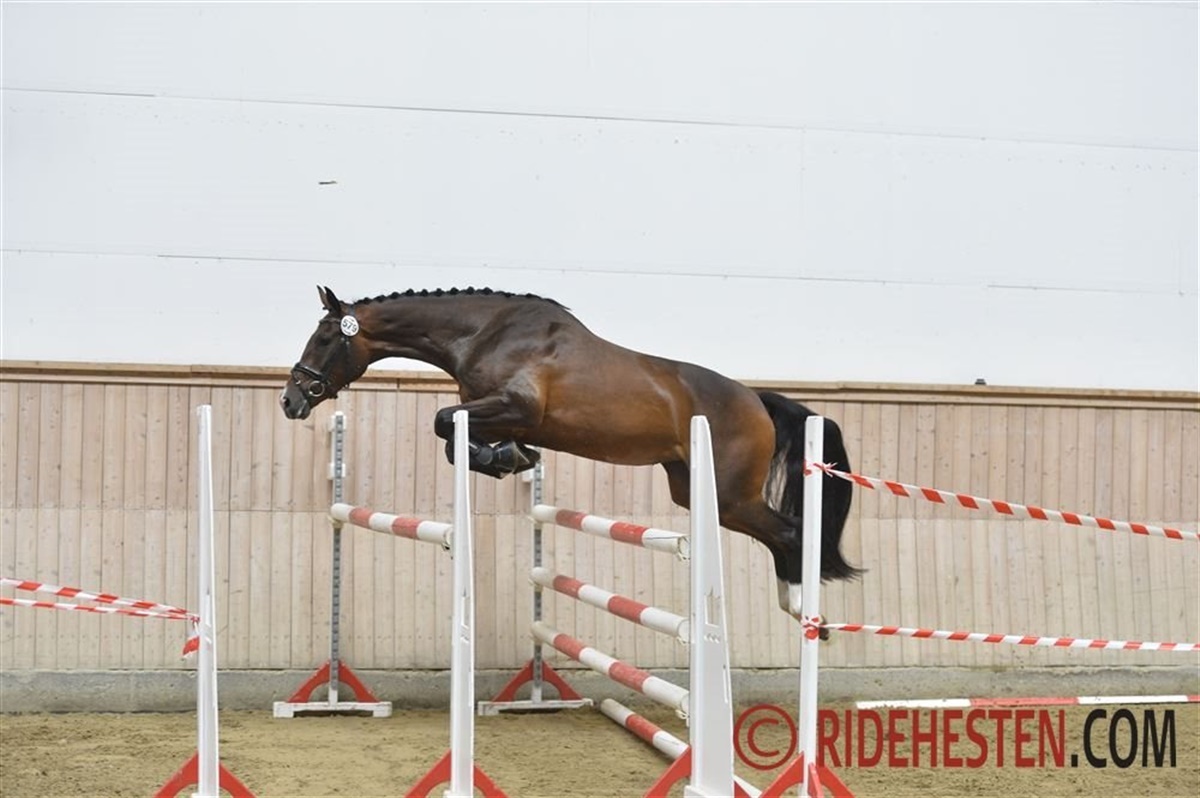 Beskrivelse: Velrejst og harmonisk hoppe, med godt udtryk og god muskulatur i kropspartierne. Hun har en smidig overlinje og en velbalanceret galop. Hun springer velovervejet og smidigt med godt overblik, et godt afsæt og med god bagbensteknik. Hun er også meget let ridelig.
