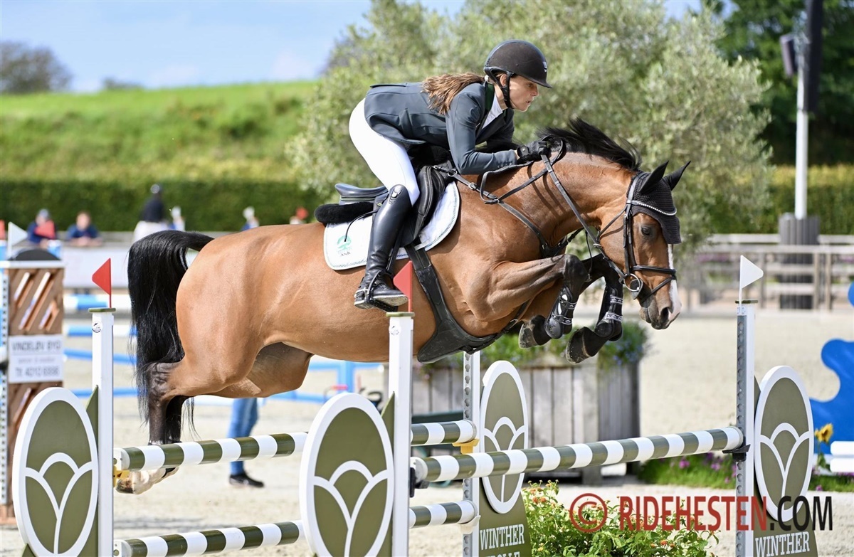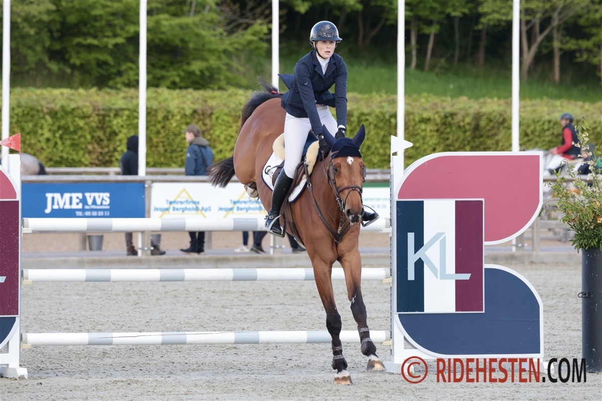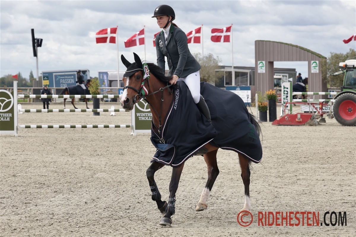 Det var da heller ingen overraskelse, at sejren gik til den altid hurtige Fiorina Ask, der med Karen Møller Rohde i sadlen har taget enormt mange sejre op gennem unghesteklasserne. Fiorina Ask er en 7-års hoppe efter Dominator 2000 Z/ Carthago, som er opdrættet på Stutteri Ask, og det er altså også med Karen Møller Rohde i sadlen, at hun er blevet suverænt uddannet. Parret red på banen som en af klassens sidste ekvipager, men det holdt dem altså ikke fra at tage sejren i tiden 37,04 sekunder foran de resterende 34 deltagere.