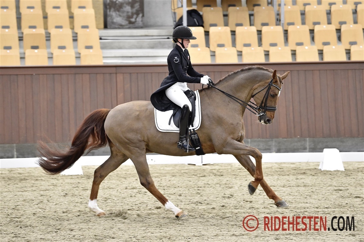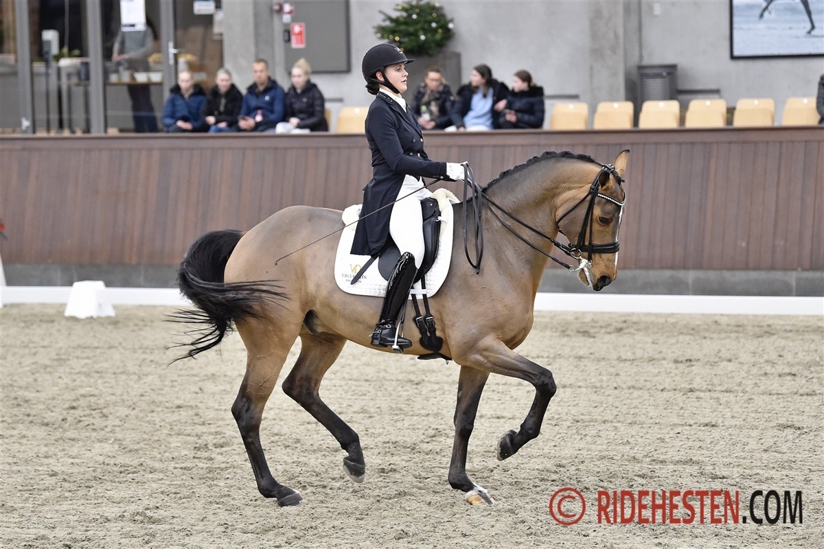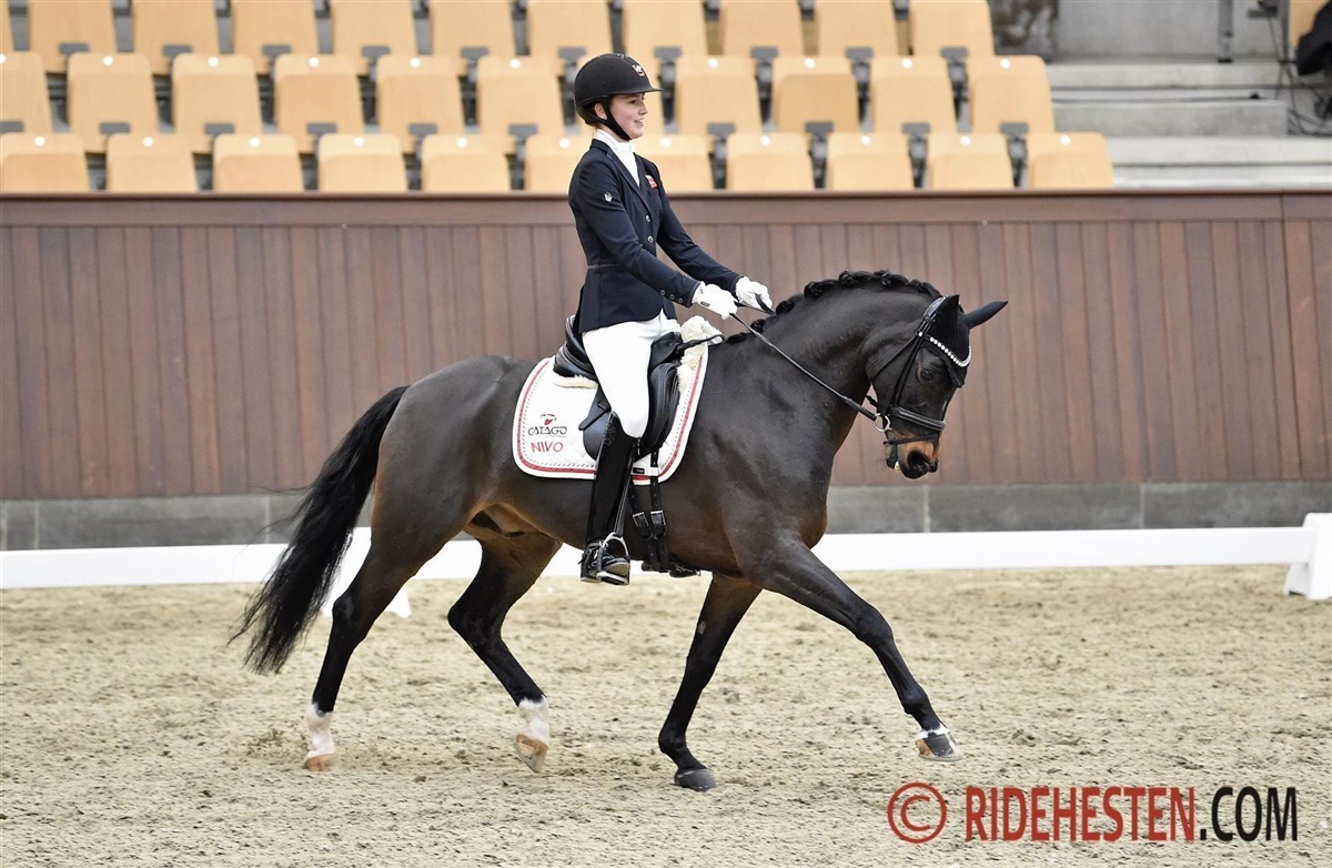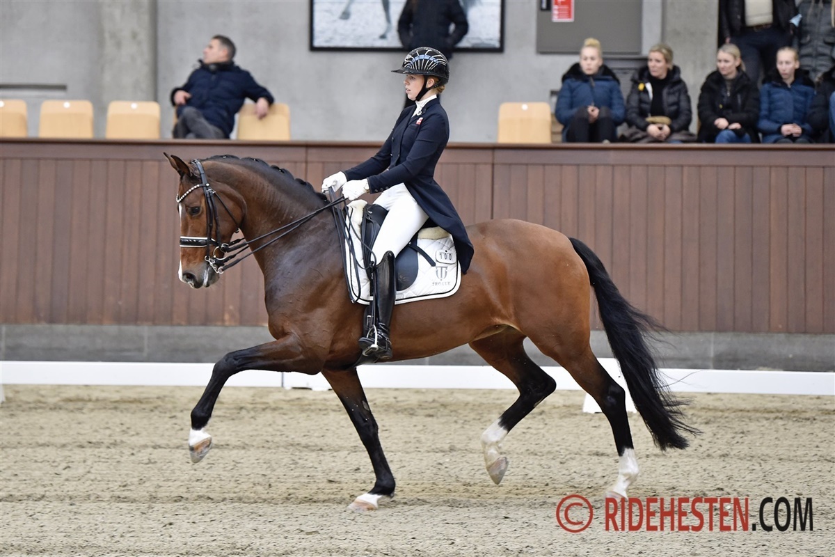 Sara Aagard Hyrm har haft et særdeles succesfuldt år med Skovborgs Romadinov e. Blue Hors Romanov/Mago XX (opdr. Esben Klinkby), hvor det blandt andet er blevet til individuelt guld ved DM og bronze for hold ved EM. I dag lagde de god afstand til konkurrenterne ved at vinde klassen med hele 74,56%. Gårsdagens vinder, Kristian Würtz Green og Bovbjergs Zhivago e. Blue Hors Romanov/Blue Hors Don Schufro (opdr. Hanne Damgaard og Leif Bovbjerg Jensen) måtte i dag tage til takke med andenpladsen efter et ridt til 72,80%, mens Amalia Skjold på Falkendaune Macohl e. Fürstenball/Schwadroneur (opdr. Thomas Bach Jensen) blev nummer tre med 70,30%.