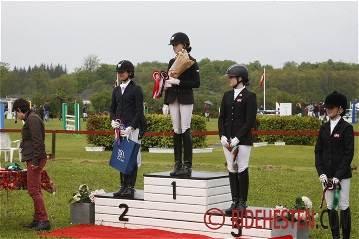 Også på sejrsskammelen var alle tre rytter blevet belønnet med hele 73%. Det var Sara van Deurs Petersen, der tager sejren på Farbenfroh med 73,699%, foran Sandra Kristoffersen på Grenzhoehe's My Ken med 73,379% på andenpladsen og Christina Marie Senger på Nørlunds Vincente på tredjepladsen med 73,049%.