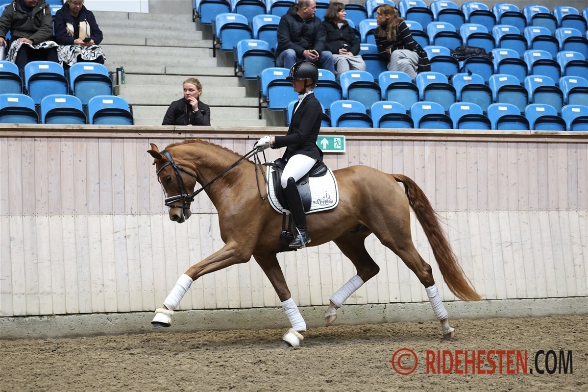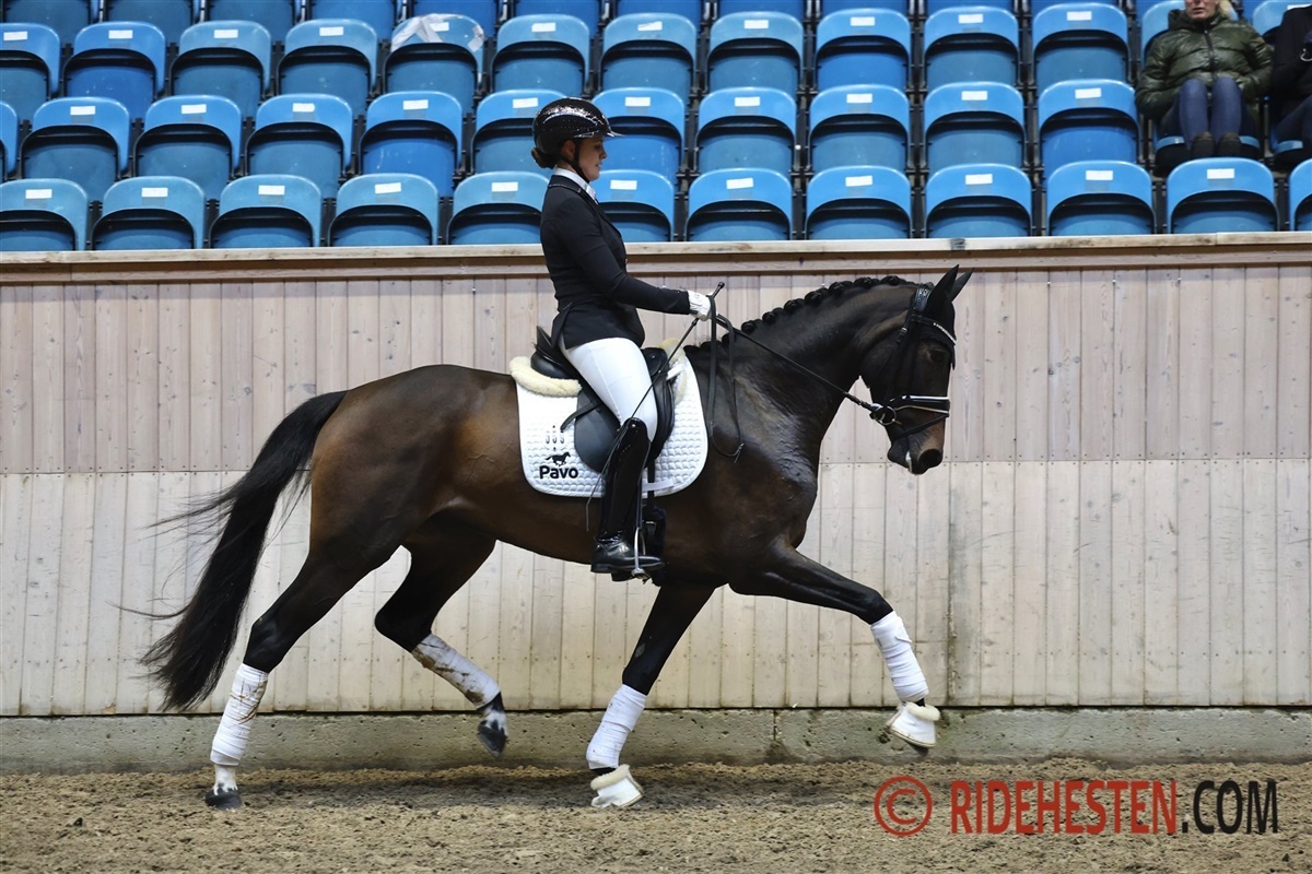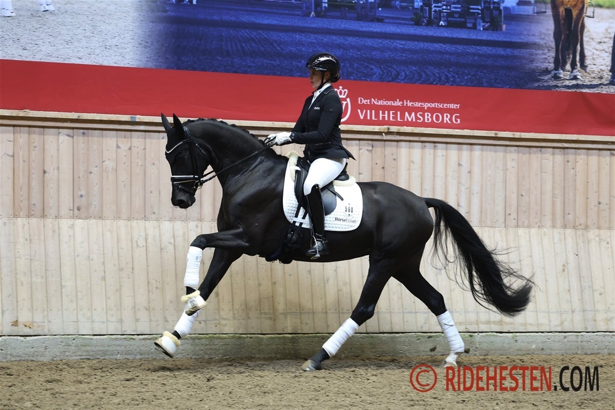 På andenpladsen fulgte Lygum’s Zelina e. Blue Hors St. Schufro/Blue Hors zack (opdr. Tine og Henning Lygum Jensen) med rytteren Victoria Vallentin i sadlen. Hoppens velfungerende trav vakte opmærksomhed hos dommerne og blev belønnet med 9,5. Samlet opnåede ekvipagen en helhed på 880 point.