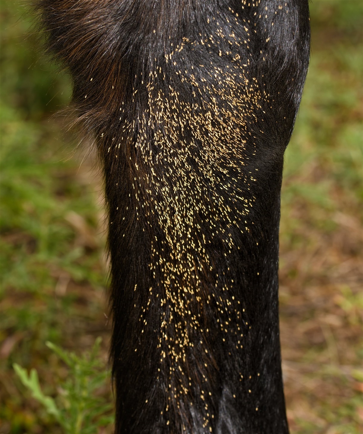 Denne sommer har der været rigtig mange hestebremser. De små, summende insekter er ikke bare en gene i luften – de efterlader også deres spor på hestens pels i form af små, gule æg, der ofte sidder på forben, bringe eller bug. Æggene er ikke uskyldig "pynt" – de er første skridt i en livscyklus, der kan give hesten ubehag og i værste fald problemer i fordøjelsessystemet.