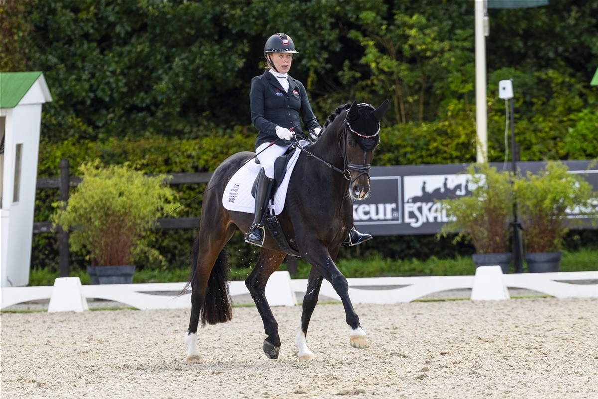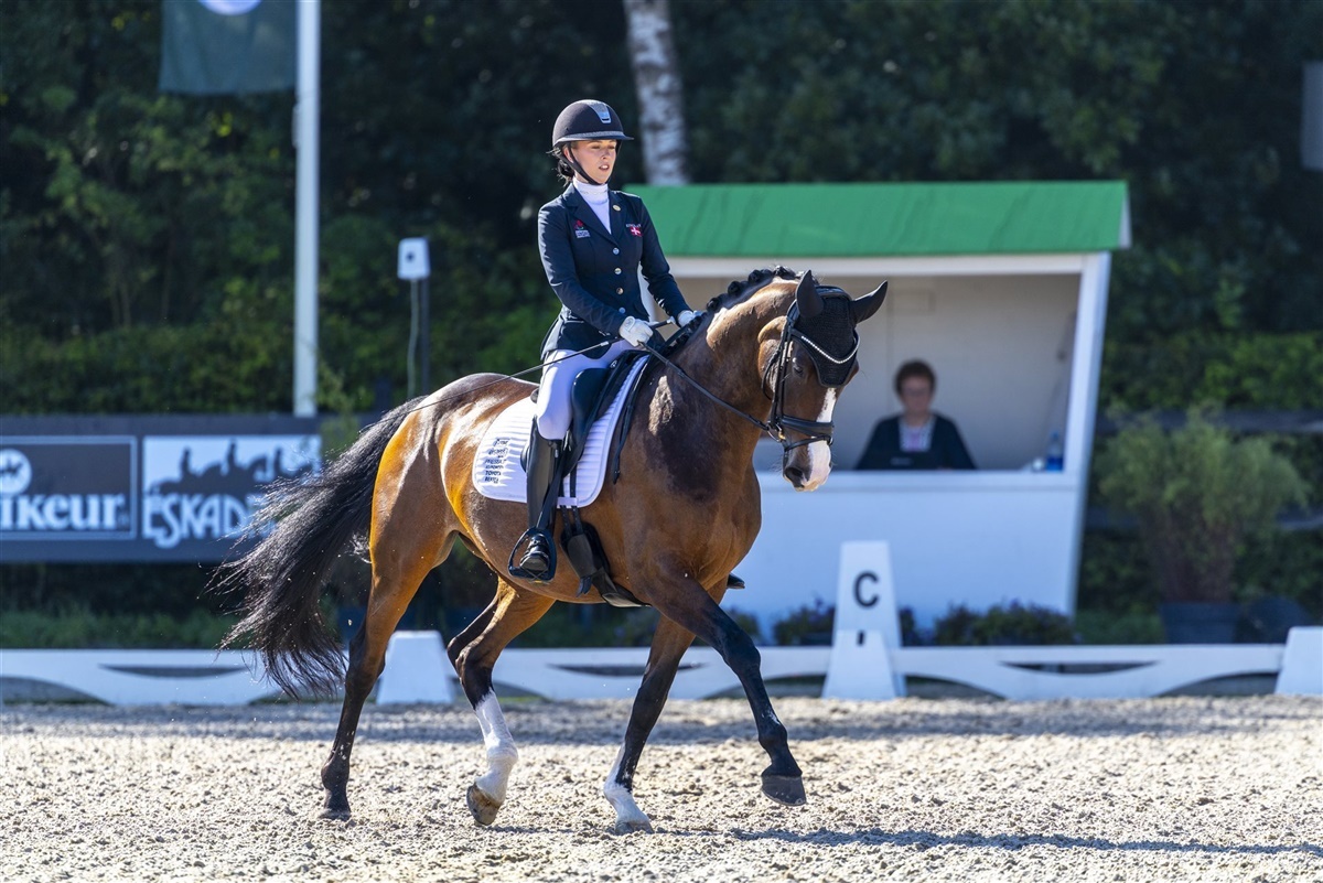Pia Wulff Jelstrup med Zafia e. Blue Hors Zee Me Blue/ Caretino (opdr. Gitte Elkjaer Kjeldsen) red sig ligeledes til individuelt sølv i torsdags og gentog successen i grad IV i dag. Karla Dyhm-Junge og Miss Daisy e. De Noir/ Blue Hors Future Cup (opdr. Marianne Brinck Stengaard) er begge dage endt lige udenfor placeringsrækken på henholdsvis fjerde- og femtepladsen.
