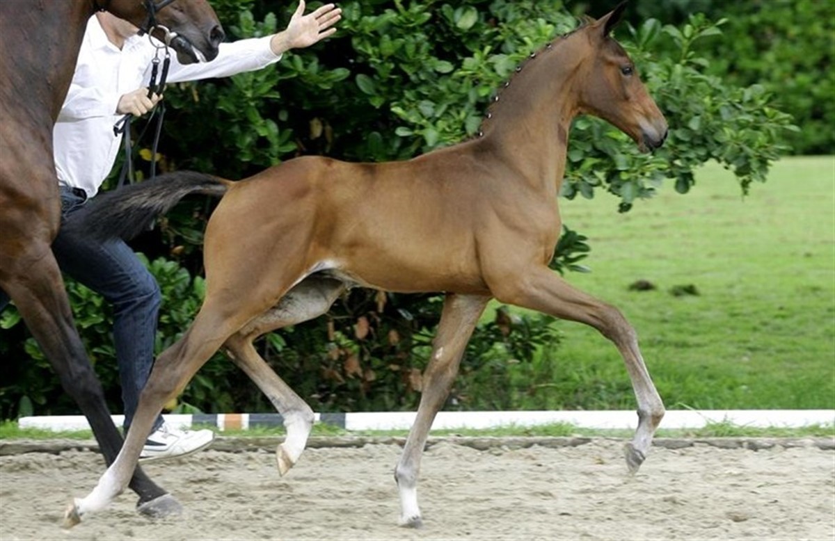 Der er tale om to hingsteføl med præstationsafstamning i særklasse, der blev solgt til Danmark ved den hollandske følauktion, hvor mange føl opnåede gode priser. Auktionens næstdyreste føl blev hingsteføllet Hoby Utopia, der har samme mormor som en af Hollands mest eftertragtede beskelere, Grand Prix-hingsten Vivaldi. Føllet er efter Van Olsts unge og succesfulde Chippendale e. Lord Leatherdale / Negro og har OL-guldhesten Uthopias far Metall som morfar. Ved hammerslag på 36.000 euro gik dette hingsteføl til Blue Hors. For aftenens højeste pris på 44.000 euro gik hingsteføllet Hendeson SVN til samme danske adresse. Igen er der tale om en præstationsrig hoppestamme. Føllet er e. De Niro / Jazz / Ulft og er trukket på samme hoppestamme som Grand Prix-hoppen Sisther de Jeu og har samme mor som Asther de Jeu, der ligeledes har stor succes i sporten under Edward Gal.
