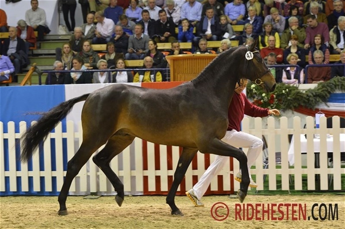 - Vi valgte at byde på kat. 47 Larion e. Lasino/Contender/Caletto I en meget moderne og sporty hingst, som viste sig rigtig godt i løsspringning og som har en meget interessant morstamme med flere Grand Prix heste, fortæller Christian Schou. Prisen for hingsten var overkommelig, 40.000 euro og brødrene Schou forventer at fremstille hingsten til kåring i Dansk Varmblod til marts. Hingsten er også repræsentant for den i Holsten så populære L-linje, der kom tilbage i kollektionen i år med flere interessante sønner Lasino er efter Landgraf/Capitol hingsten har været succesfuld i sport bl.a. under Bo Kristoffersen. Kendte afkom i sport efter Lasino er bl.a. Lord Louis/Alois Pollmann-Schweckhorst, Lars Nieberg og Denis Lynch – Le beau/Stein Endresen og Leconte/Marcus Ehning.