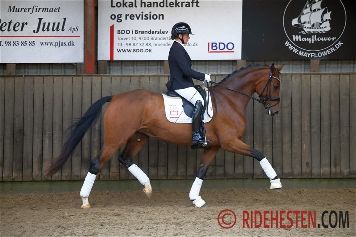 Andenpladsen i Brønderslev gik til bronzemedaljehoppen Midt-West Present e. Franklin/ Blue Hors Don Schufro (opdr. Stutteri Midt-West v/Poul Erik Nielsen). Også Midt-West Present har fået et føl i år og fik derfor lagt 25 point oveni de i forvejen høje karakterer, der lød på 7,5 i skridt og 8,5 i trav, galop, ridelighed og kapacitet. Det gav en samlet score på 855 point. Hoppen er ejet af Majken Faaborg Glerup, der selv har uddannet hoppen og fremviste den i dag. Majken er amatørrytter på højt niveau ved siden af sit job som sælger og leder i medicinalindustrien, og hun er pt. aktuel i en profilartikel i Ridehestens novembermagasin.