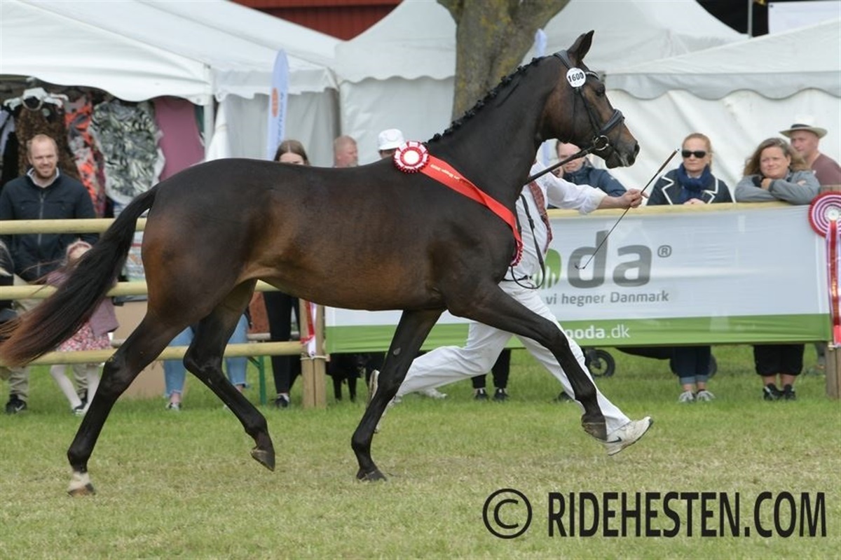 – Det er en helt fantastisk følelse at vinde skuets to-års hoppe igen i år. Så betaler det hårde arbejde sig, og man glemmer alle de lange vinteraftener med udmugning, fortæller Karen Frederiksen med et smil.