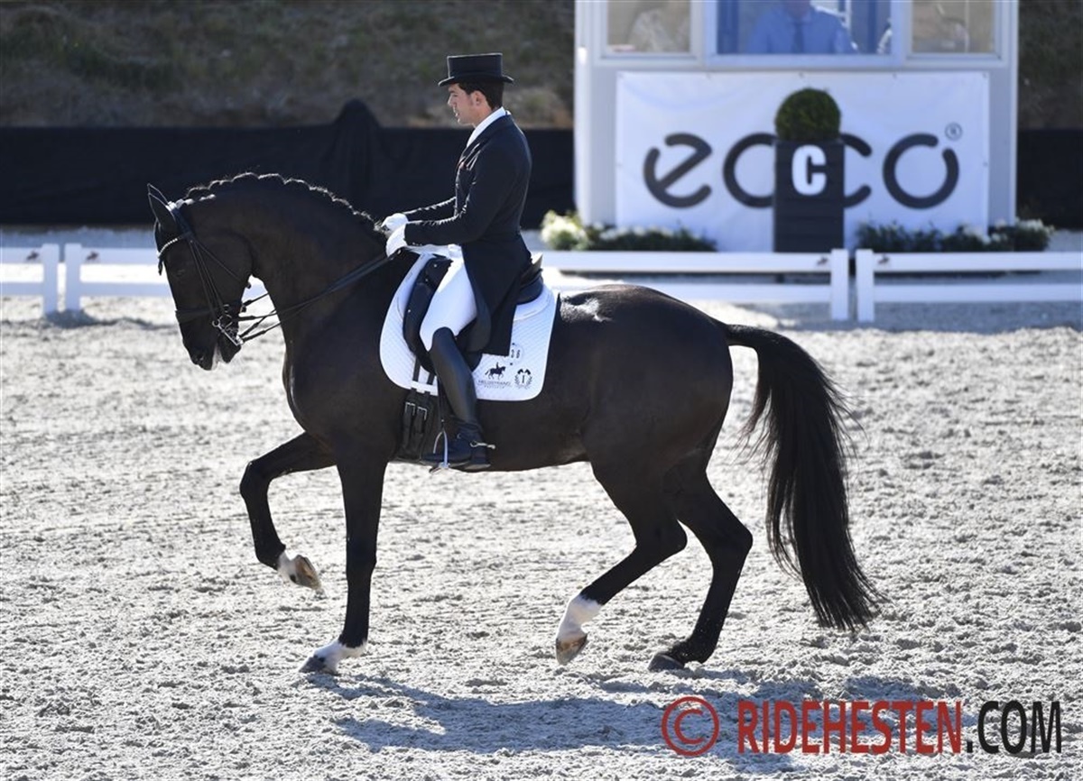 Der er en super stemning på stævnepladsen med mange glade, sommerklædte tilskuere, som nyder at følge spring- og dressurkonkurrencerne ved Equitour Aalborg sponsored by ECCO. Publikum fik god underholdning i eftermiddagens Chedi Residence CDI3* kür og især da Severo Jurado Lopez og Deep Impact leverede en kür med med masser af power og høj sværhedsgrad. Severo red travers i passage, han red etterchangementer op ad midterlinjen - med en hånd. Til slut red han etterchangementer på en kort diagonal efterfulgt af etterchangementer på kortsiden for derefter at gå direkte ind i piaffe-pirouette. Det var noget publikum kunne bruge og de klappede Severo og Deep Impact taktfast op ad midterlinjen.