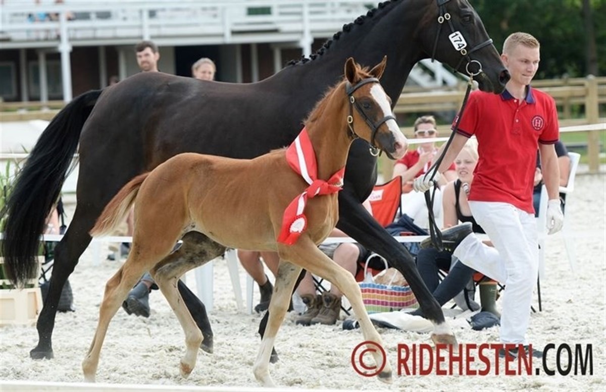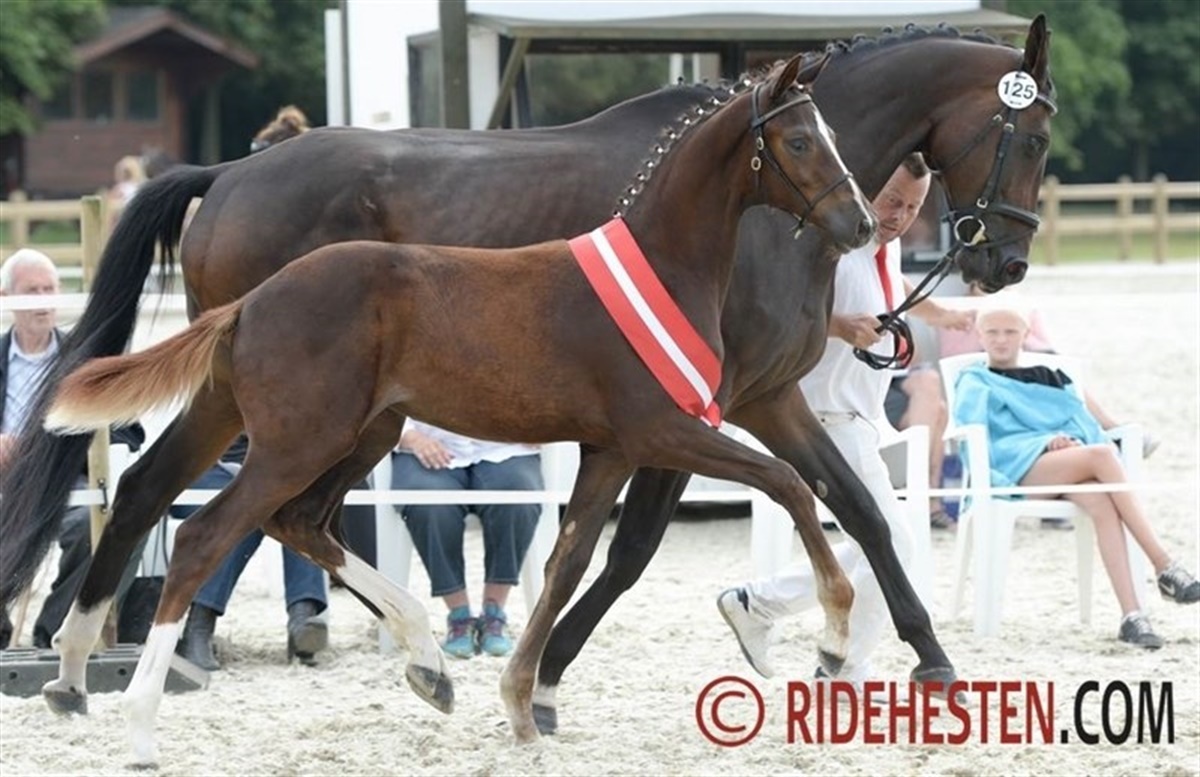 Dagens bedste dressurbetonede hingsteføl blev kat. 125, Poppelgaardens Ginger e. Grand Galaxy Win/Estebann XX med RDS hoppen Popplegaardens Treasure som mor. Han er ejet og avlet af Poppelgaarden v. Gitte Jensen og Henrik Nielsen, Kirke Såby.