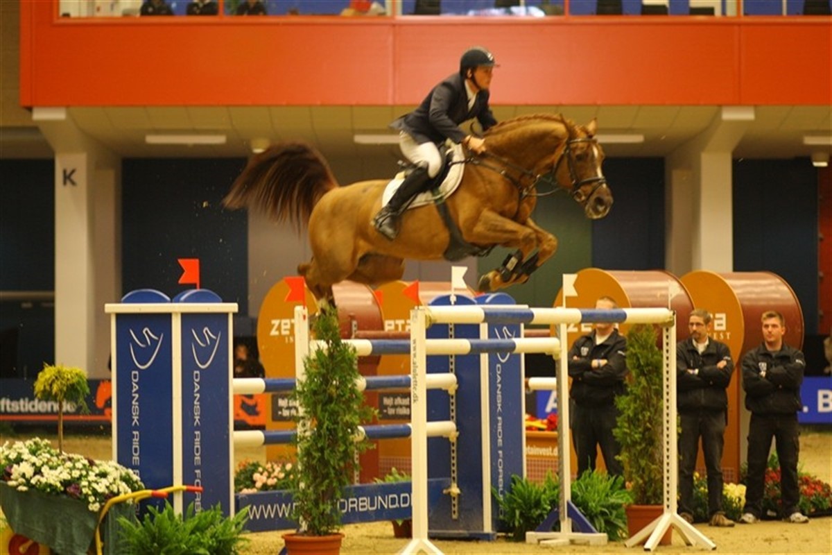 Der var total dansk domanans i dagens Masterspringning i Odense - tilskuerne kunne næsten ikke blive siddende på tribunen - så spændende var det. Salen kogte og jublen skyllede ned over Andreas Schou, da han red fejlfrit for fjerde gang på avlshingsten Lambrusco Ask. De 6 forhindringer havde nået den anseelige højde af knap 180 cm - og alligevel måtte der en omspringning til for at afgøre klassen. Tina Lund var først ude på Carola - hun forsøgte at ride hurtigt, men det kostede nedslag på de store forhindringer. Andreas Schou og Lambrusco Ask var derimod fejlfri, og da den tyske verdensrytter Christian Ahlmann, verdensranglistens nr. 3 fik to nedslag var sejren hjemme til Schou med Tina på andenpladsen. - Det er en fantastisk hest, han springer med så meget overskud på forhindringerne, fortale Andreas Schou efter sejren. Han viser gang på gang at han har kapacitet til de helt store opgaver, fortæller Andreas Schou, der undrer sig over, at ikke flere avlere vælger at bruge hingsten. På spørgsmålet om ikke det er nervepirrende at ride til så store forhindringer, kom svaret tørt: - Ikke på Lambrusco Ask, den kraft han sætter af med betyder, at jeg bare skal ride rigtigt hen til forhindringerne, og så sidde stille, sluttede Andreas inden han red ind i hallen for at modtage en funklende ny Böckmann trailer.