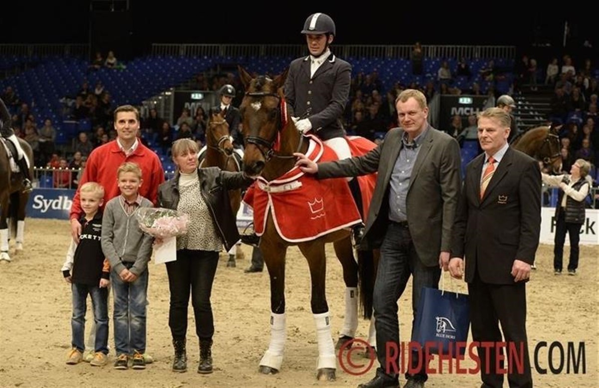 Den samlede vinder blev Hot Shot W e. Blue Hors Hotline/Kawango (opdr. Lisbeth Holm, Stutteri W, Hillerød), ejet af Helgstrand Dressage i Vodskov og redet af Severo Jurado Lopez. De to dommere Susanne Baarup Christensen og Birthe Lyder Nielsen var særligt begejstrede for hestens trav, som de betegnede som dejlig, elastisk og elegant med fine øgninger, og belønnede denne med et 10-tal. Også Carl Hester var begejstret, og udtalte bl.a.: - Den føles moden og op ad bakke, let at sidde på, ligger godt på tøjlen, meget ridelig for hjælperne, galoppen er op ad bakken, men kunne have mere spring bagfra, god selvbæring, god balance, en dejlig hest at ride, fantastisk trav, korrekt og afslappet skridt, tre meget gode gangarter, let at samle og let af længe. Elsker at ride den. Let at ride frem og tilbage. Han belønnede den med 10 for ridelighed og 9 for kapacitet. Det samlede resultat for Hot Shot W blev 928 point.