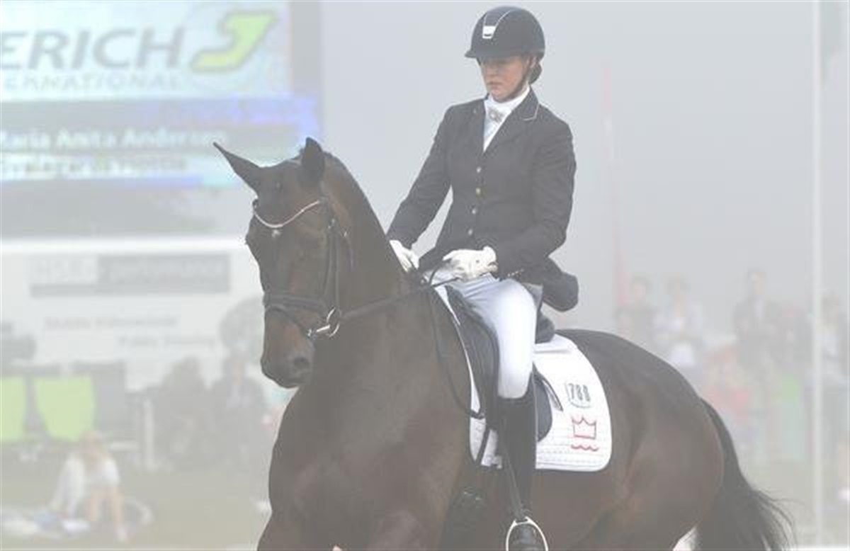 Sølvmedaljehoppen Svalegårds Hottie e. Blue Hors Hotline/ De Noir (opdr. Else Marie og Jens Christian Krabbe) var under Blue Hors-berideren Maria Anita Andersen den første danske 6-års hest på banen i dag. Ekvipagen sluttede sidste år lige uden for medaljerækken i 5-års finalen.