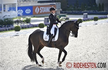 Tyske Kristina Björing-Sprehe havde som næstsidste rytter leveret en fejlfri og fin velkomponeret og svær Kür, som hun havde fået tårnhøje point for: 88.804%.