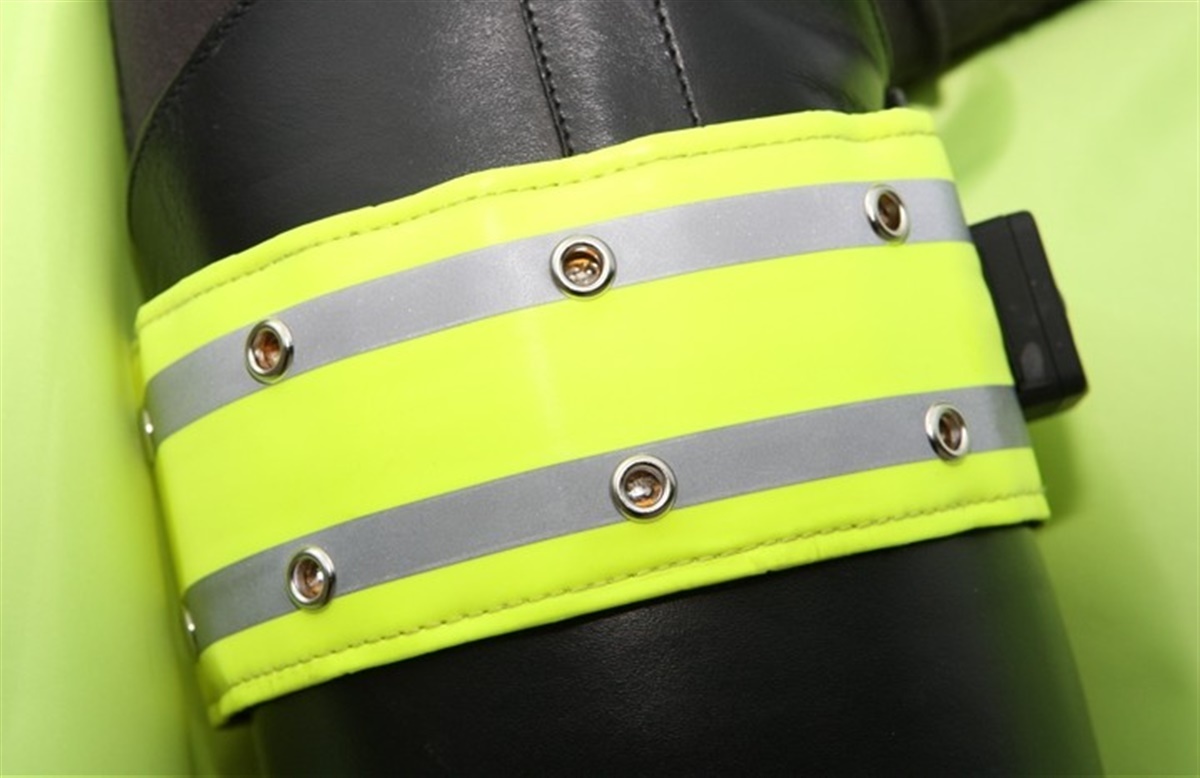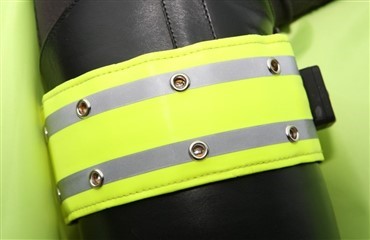 Når du rider ude, når det er mørkt, eller er ved at blive det, så skal du have en lygte på dit venstre ben, der lyser hvidt forud og rødt bagud min. 150 m. Hesten skal have et refleksbånd på hvert ben af min. 5 cm’s bredde. Det siger loven simpelthen!