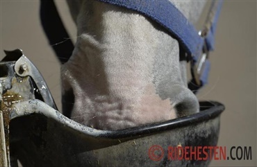 Er der installeret vandkop i din stald, så husk at efterse, om den giver nok vand. Den skal gerne give min. 8-10 l vand i minuttet. Kommer der ikke nok vand ud, gider hesten ikke besværet og vænnes til at drikke for lidt. Sørg for, at ventilen altid er ren, så vandet ubesværet kan løbe ud. Vandkoppen bør af hygiejniske årsager ikke placeres lige ved siden af krybben, men det har dog vist sig at være en god ide at placere den på samme boksside, da der herved er mindre risiko for at hesten vælger at benytte vandkoppen som toilet. Vandkopper med frostsikring er en god løsning i vintermånederne. Vandet må dog hverken være for koldt (er det iskoldt risikerer hesten at få kolik) eller for varmt (er det mere end 8 grader er grobunden for bakterier for høj).