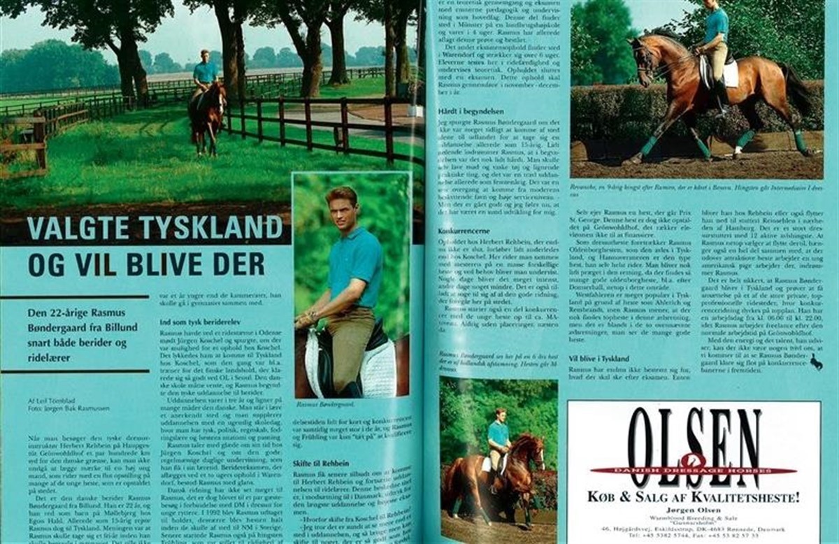 I november nummeret 1995 bragte vi en artiklen om Rasmus Bøndergaard, der uddannede sig som berider i Tyskland.