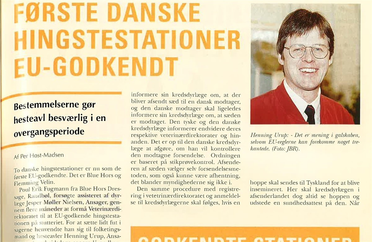 I februar nummeret 1996 bragte vi artiklen om at de første danske hingstestationer er blevet godkendt.