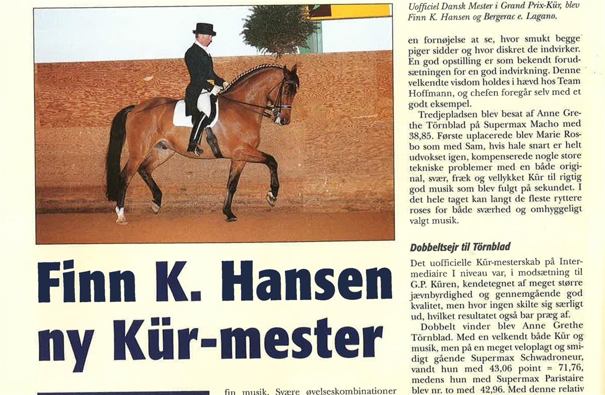Husker du... Vi ser 20 år tilbage i tiden og har fundet en af de gamle artikler frem fra Ridehesten Hippologisk. I januar nummeret 1997 bragte vi reportagen fra elitestævnet i Vallensbæk med de uofficielle danske kür-mesterskab.