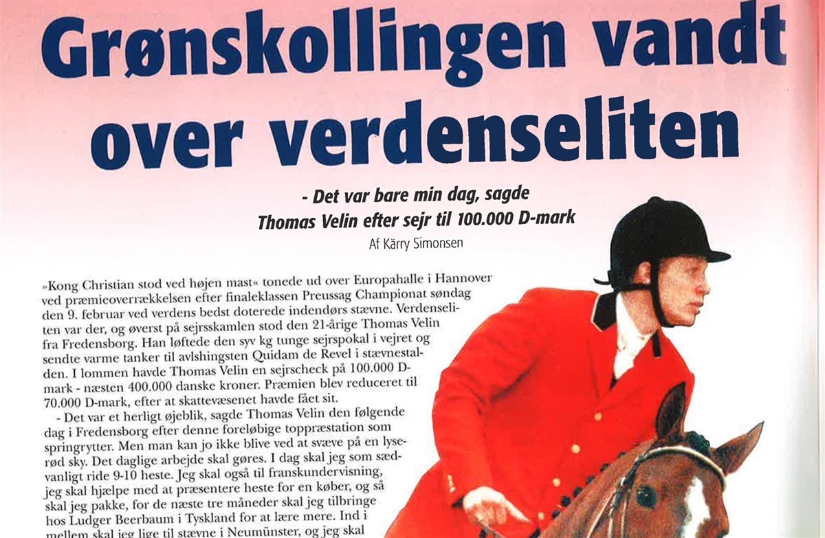 I marts nummeret 1997 bragte vi et interview med springrytter Thomas Velin efter Grand Prix sejren ved verdens højst doterede indendørsstævne i tyske Hannover.