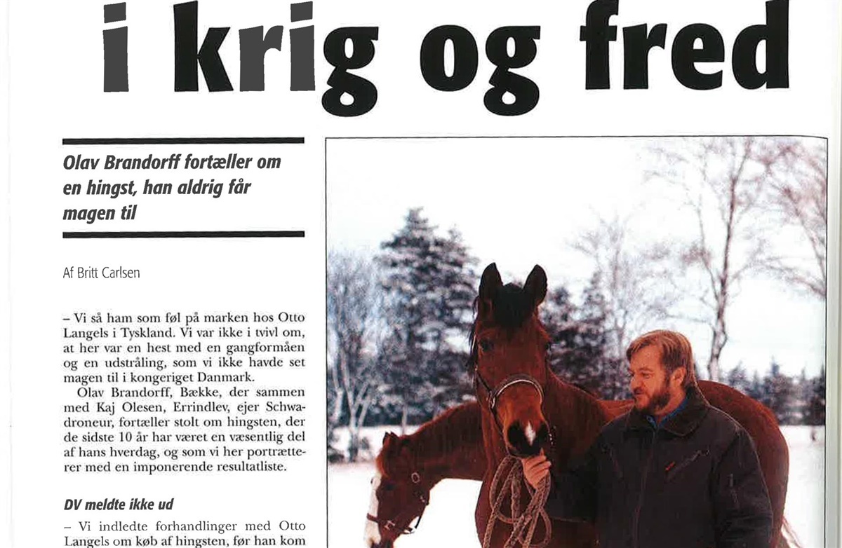 Husker du... Vi ser 20 år tilbage i tiden og har fundet en af de gamle artikler frem fra Ridehesten Hippologisk. I marts nummeret 1997 bragte vi beretningen om trakehnerhingsten Schawdroneur's vej til Danmark.