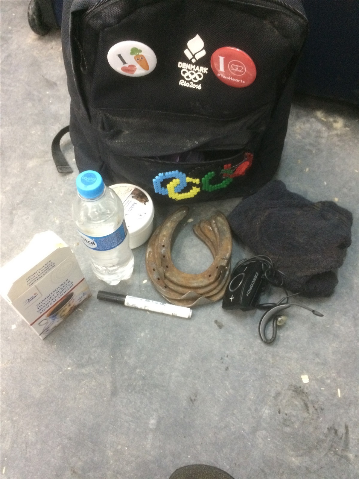 Når først hest, rytter og groom forlader stalden for at gå ud på opvarmningsbanen inden konkurrencen, så skal groomen have alt det med, som hun kan forestille sig, der kan blive brug for.