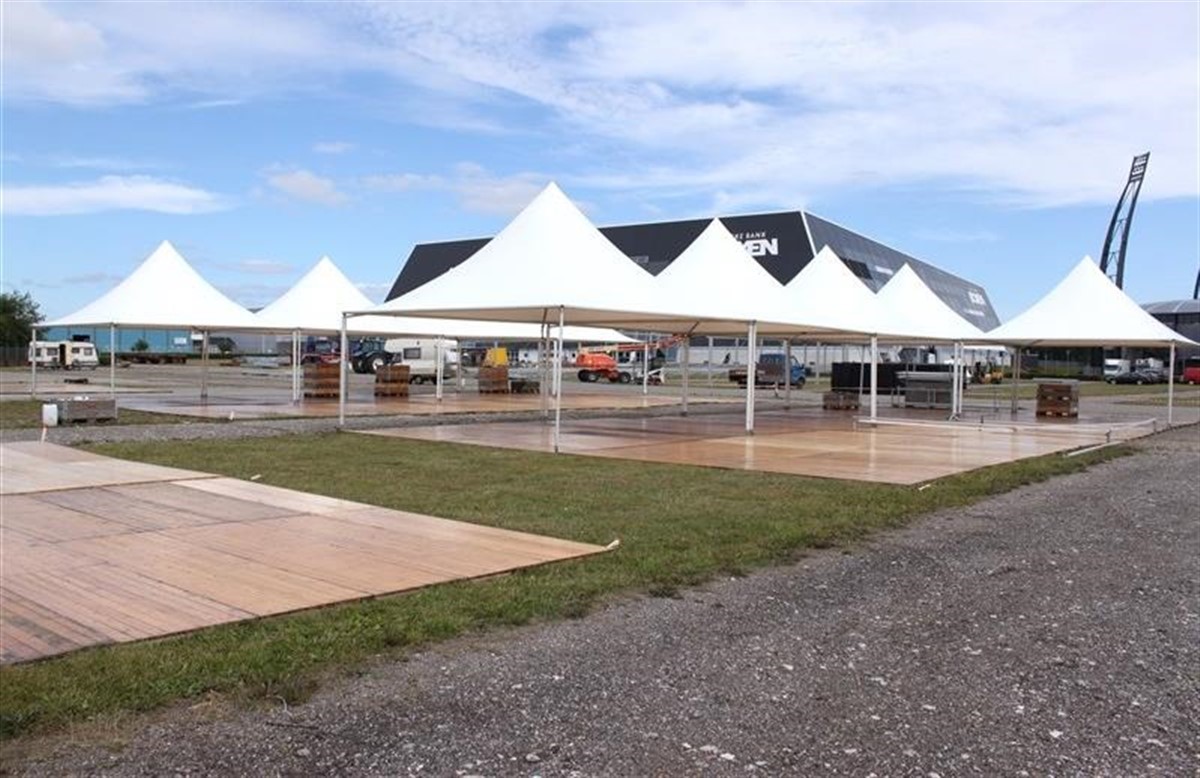 Lige nu arbejdes der på højttryk for at få etableret konkurrencebaner og opvarmningsbaner på den store parkeringsplads foran Boxen og MCH Arena, i alt 23.000 m2 ridebane skal der etableres på området. Fredag aften den 16. august skal Hernings hjemmehold, FC Midtjylland spille hjemme mod Brøndby, men knapt har den sidste fodboldstøvle forladt stadion førend 50 hårdtarbejdende hjælpere fra European Herning begynder at køre 8.000 gummimåtter som underlag for 1.300 m3 specialsand ind på stadion for at omdanne fodboldarenæn til et internationalt ridestadion. Det hele skal være klar til dressurrytterenes træning mandag morgen kl. 6.00.