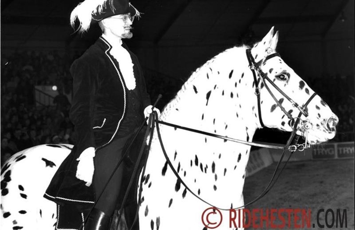 På dette billede ses Bent Branderup, som er stifter og leder af Skolen for Akademisk Ridekunst. Han underviser i klassisk ridening og er selv elev fra Escuela Andalusa del Arte Equestre i Jerez, Spanien. Han har en klar forkærlighed for knabstrupperen og er blandt andet forfatter til en bog om racen. Du kan læse meget mere om Bent Branderup og klassisk ridning i magasinet Ridehestens julinummer 2006 og novembernummer 2001. Ifølge hans hjemmeside, www.bentbranderuptrainer.com, har han pt. tre knabstruppere, hvoraf de to aldersmæssigt kunne være hesten på billedet. Det drejer sig om Hugin og Filur, men det kan selvfølgelig også være en helt tredje. Ved du, hvem han rider på, så skriv det i kommentarfeltet ved billedet, som findes på Ridehesten.com under Nostalgiske Fotos – her.
