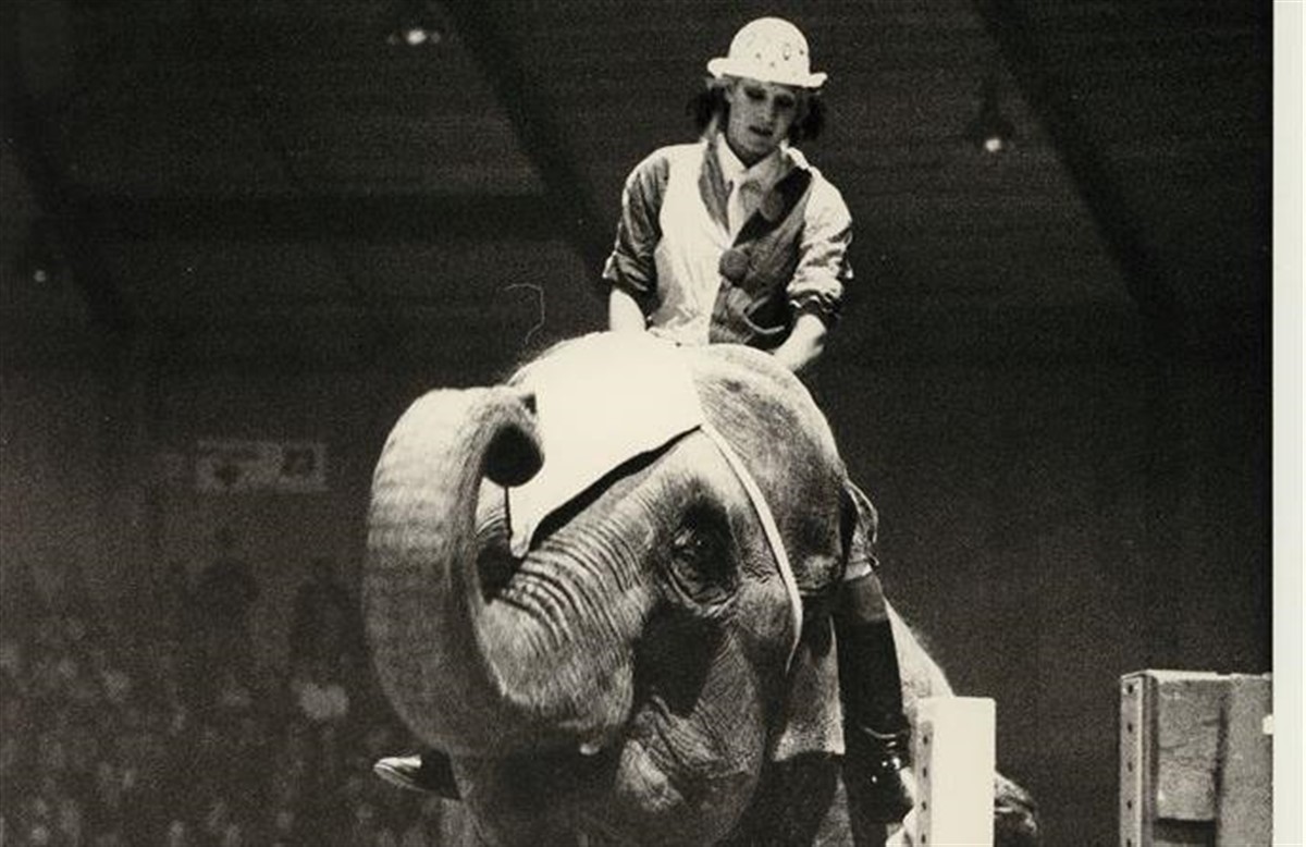 Det må således være en af disse elefanter, der er afbilledet på dagens nostalgiske foto, men arkivet har også bidraget med informationer til billedet, nemlig, at det angiveligt skulle være springrytter Merete Jensen, der sidder på elefanten.
