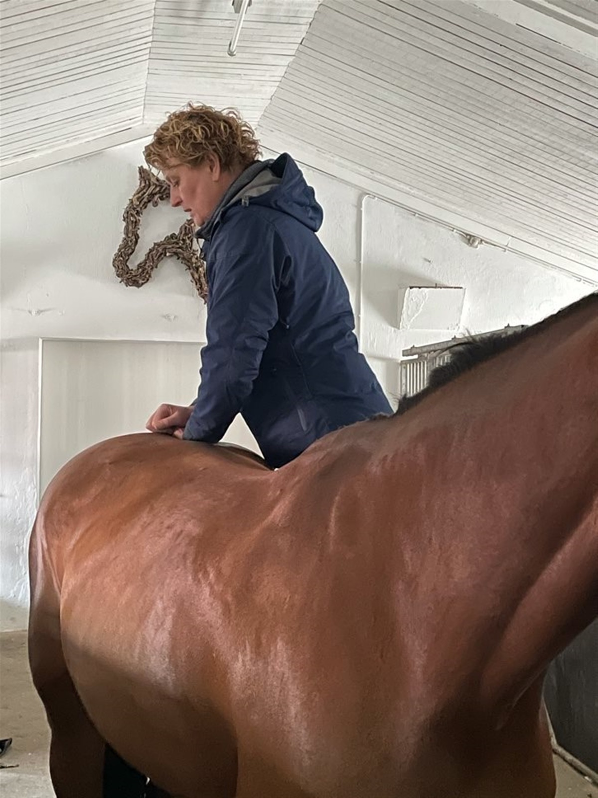 Kitty har fået en kiropraktisk behandling af Marianne Dahl-Jensen, og jeg har sat ind med mange stabiliserende og afspændende staldgangsøvelser, som du kan læse mere om i de kommende numre af magasinet Ridehesten.