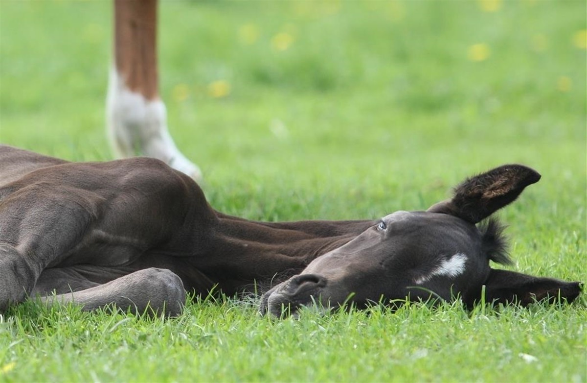 Føl smider sig altid ned og sover når de har behov for det. Voksne heste derimod lægger sig ikke bare ned udenfor. Når hestene går i flok, er der næsten altid mindst to i flokken der står op og holder vagt, mens andre ligger og hviler. Når føllet bare går omkuld er det fordi det trygt regner med, at mor – og de andre i flokken – passer på.