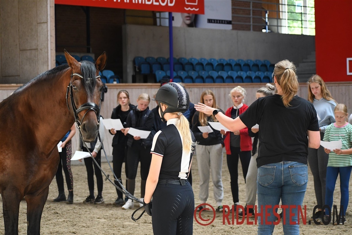 I går var Ridehesten på besøg, og her var Signe Wiese fra Dansk Varmblod på besøg for at lære deltagerne omkring eksteriørbedømmelse af Dansk Varmblods-heste, og på den måde fik pigerne et indblik i, hvad det er, der er vigtigt for at avle en hest, som har det bedste udgangspunkt til at præstere i sporten.